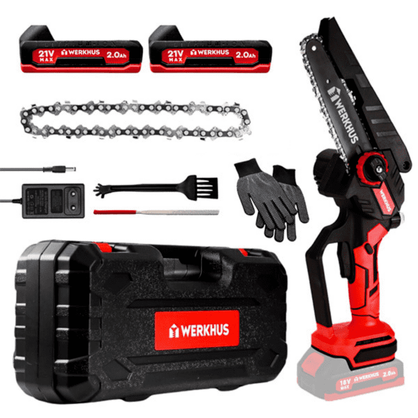 O pacote de venda inclui o livro e o seguinte Werkhus cordless chainsaw MAXX